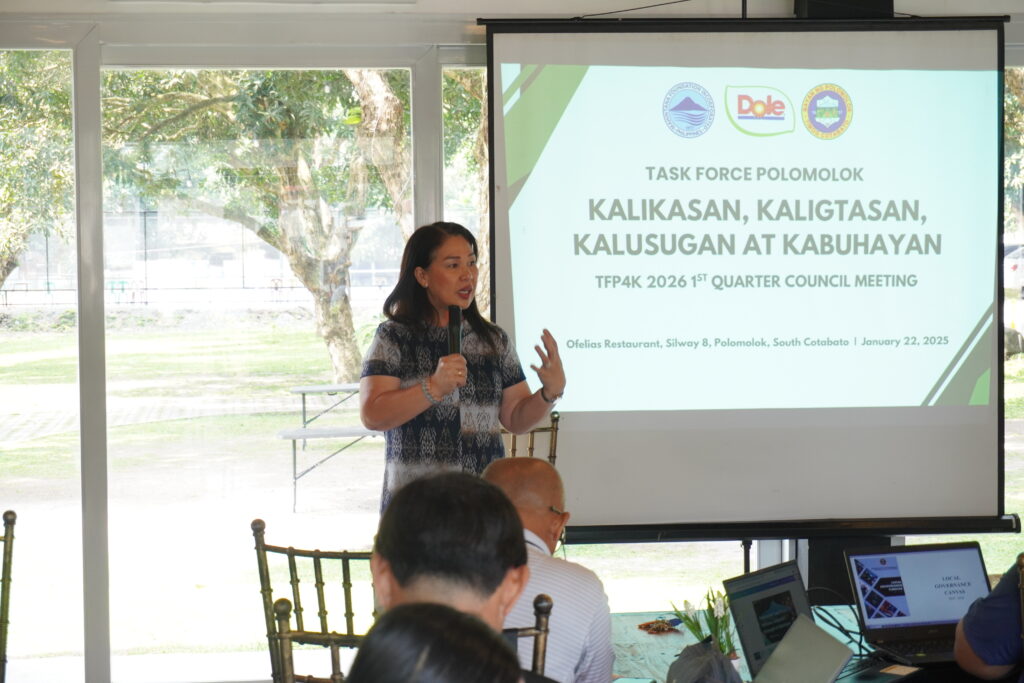 The Polomolok Task Force: Kalikasan, Kaligtasan, Kalusugan at Kabuhayan (PTF4K) successfully held its First Quarter Council Meeting on January 22, 2026, at Ofeliaโs Restaurant by Esma, Brgy. Silway-8, Polomolok, South Cotabato. Representatives from local government offices, PNP and BFP Polomolok, the Department of Education, Polomolok General Hospital, the Polomolok Local Peoples Council, and partner organizations including Dole Philippines, Inc. and Save the Children Philippines came together, demonstrating the strength of multi-stakeholder collaboration in shaping coordinated, results-driven solutions for the municipality.
